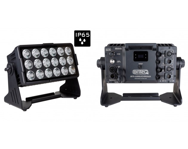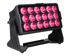 Ce puissant projecteur IP65 pour l'extérieur, fonctionnant sur batterie, est équipé de 18 LED RGBL de 10W.