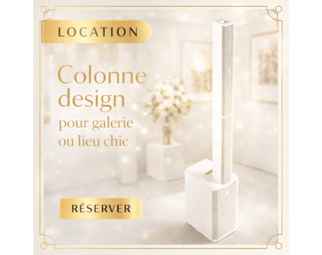 location d'une sono en colonne discrète et design de couleur blanche pour show room ou boutique de luxe